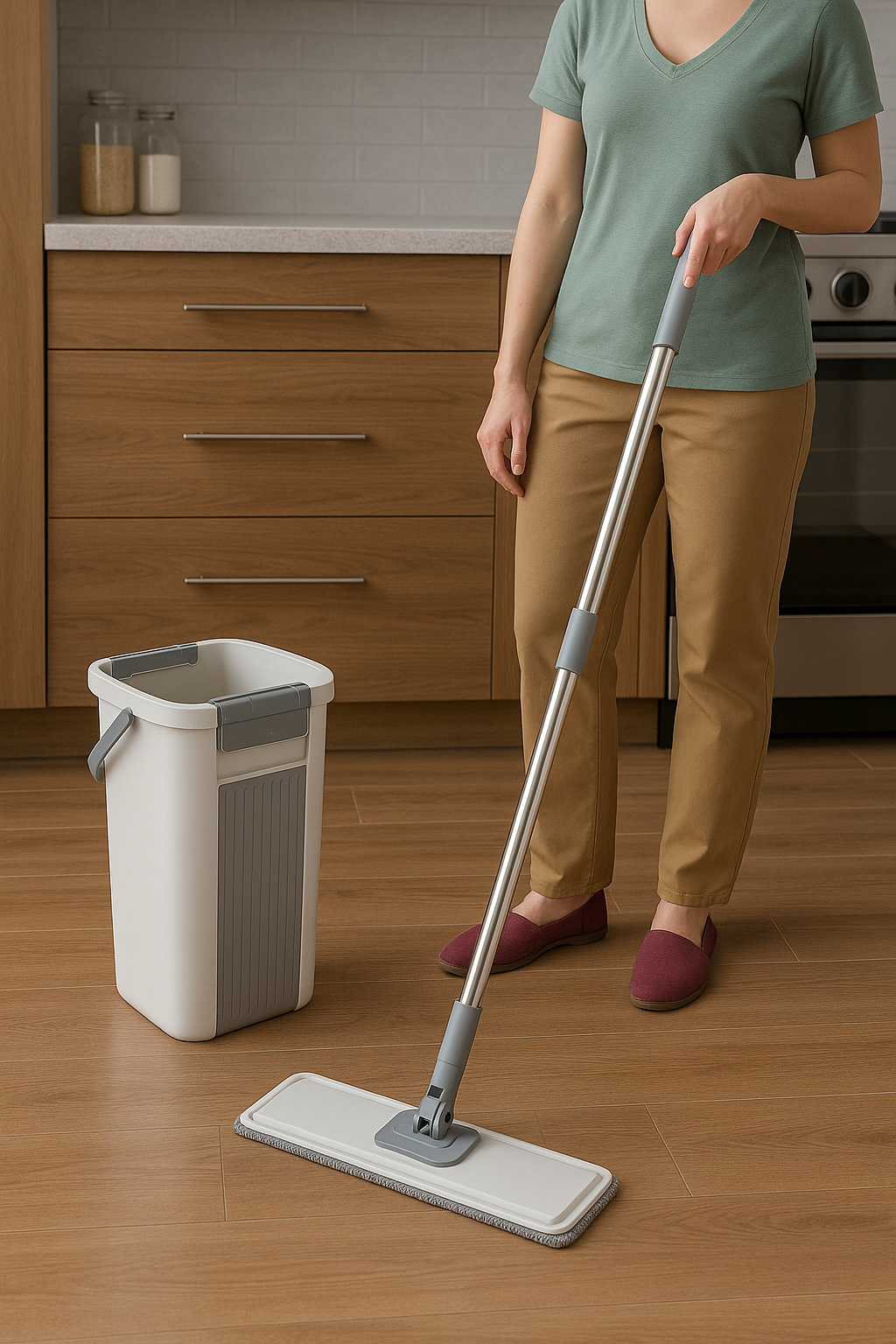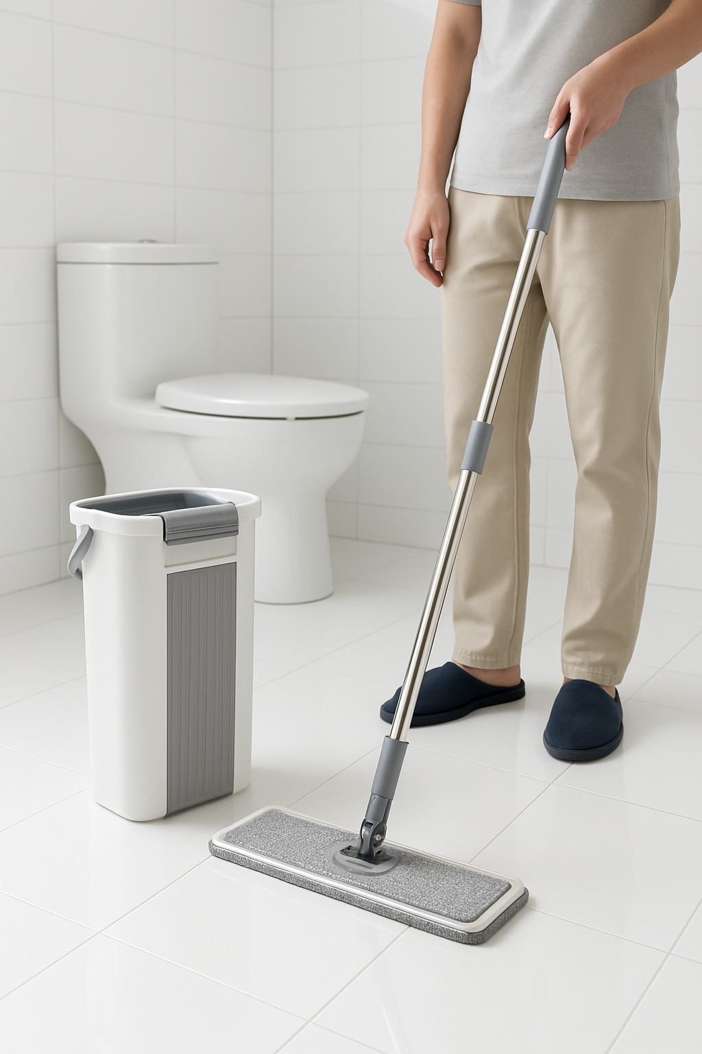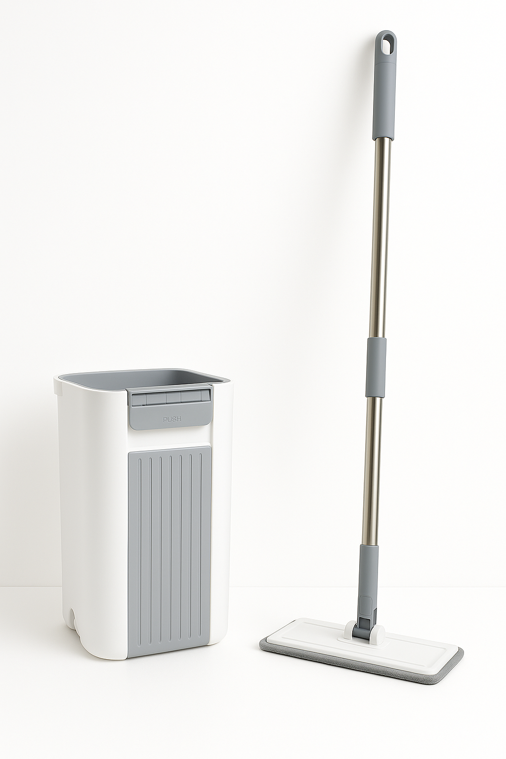 هذه مسّاحة تنظيف مسطّحة (Flat Mop) عصرية تأتي مع جردل مخصص مزوّد بآلية غسل وعصر أوتوماتيكية، مما يسهّل عملية التنظيف دون الحاجة لاستخدام اليدين.