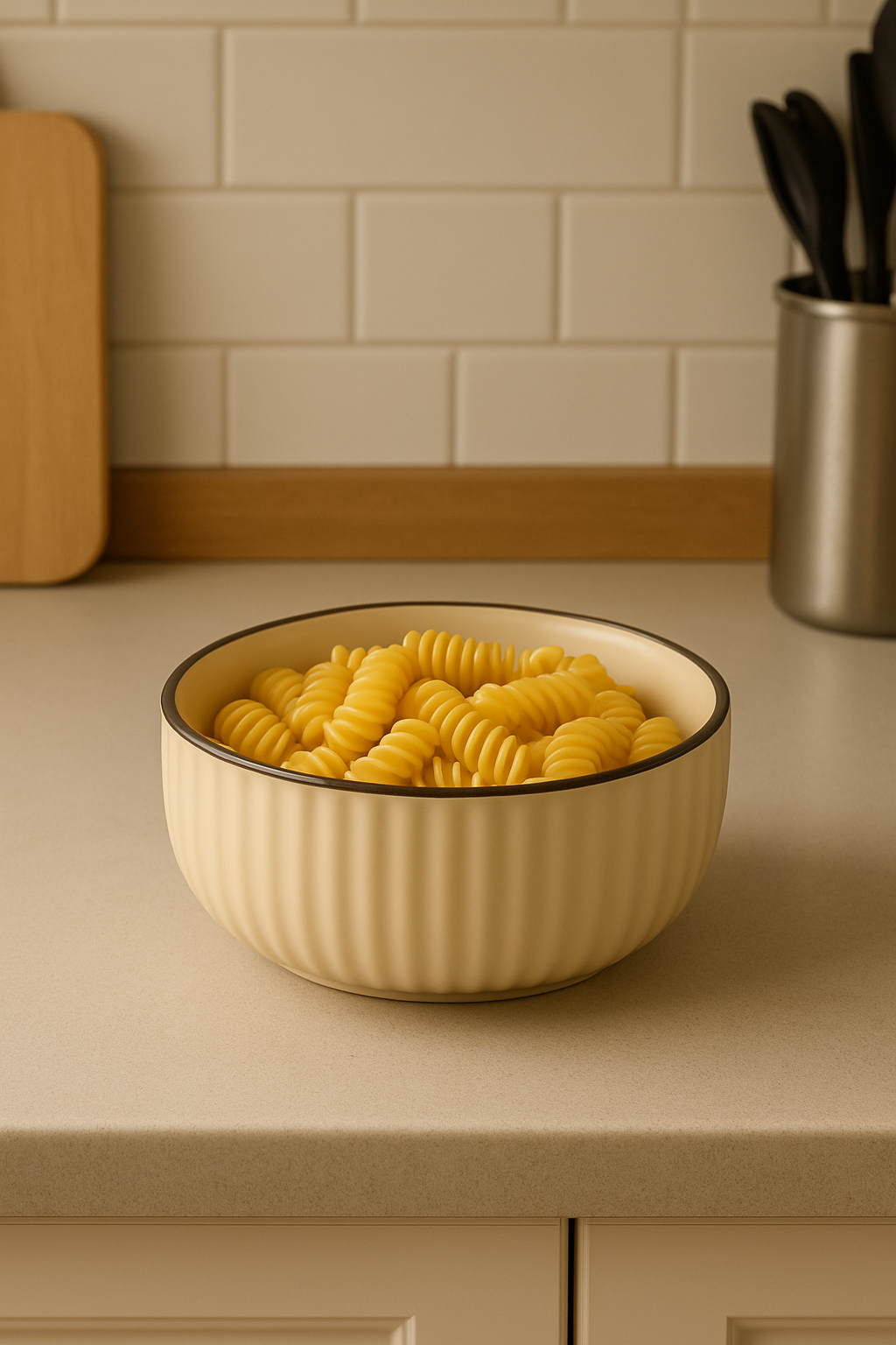 سلطانية أنيقة بحجم وسط مصنوعة من البورسلين الفاخر، متوفرة بلونين مميزين (بيج – أسود)، مع تصميم خارجي بخطوط بارزة وحافة علوية رفيعة داكنة لمظهر عصري وراقي. مثالية لتقديم الشوربة، الأرز، المعكرونة، السلطات أو حتى الفواكه والحلويات.