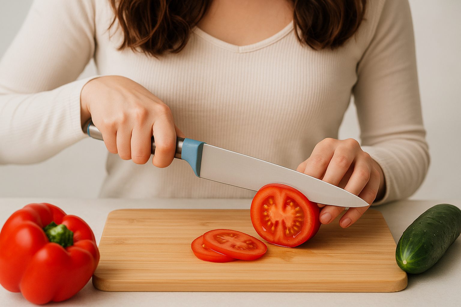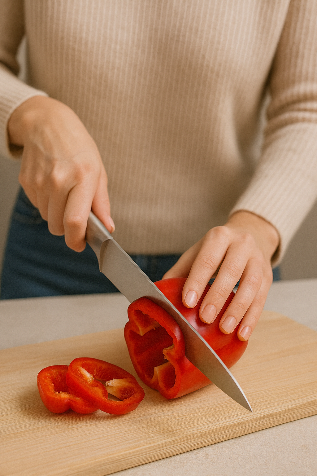 سكين شيف احترافية مصنوعة من الفولاذ المقاوم للصدأ (ستانلس ستيل) عالي الجودة، مصممة لتوفر لك دقة قص مثالية وسهولة في الاستخدام اليومي داخل المطبخ. المقبض الأنيق والمريح يمنحك تحكمًا أفضل أثناء التقطيع، مما يجعلها أداة أساسية لكل مطبخ منزلي أو احترافي.