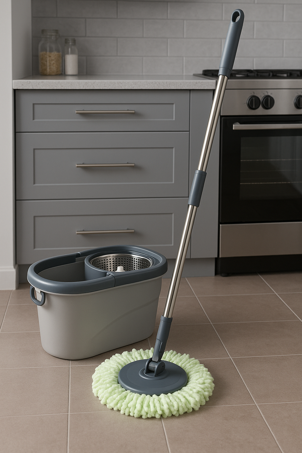 بصفاية ستانلس ستيل عالية الجودة مقاومة للصدأ، تتيح عصر الممسحة بسهولة وبقوة لضمان تجفيف سريع.