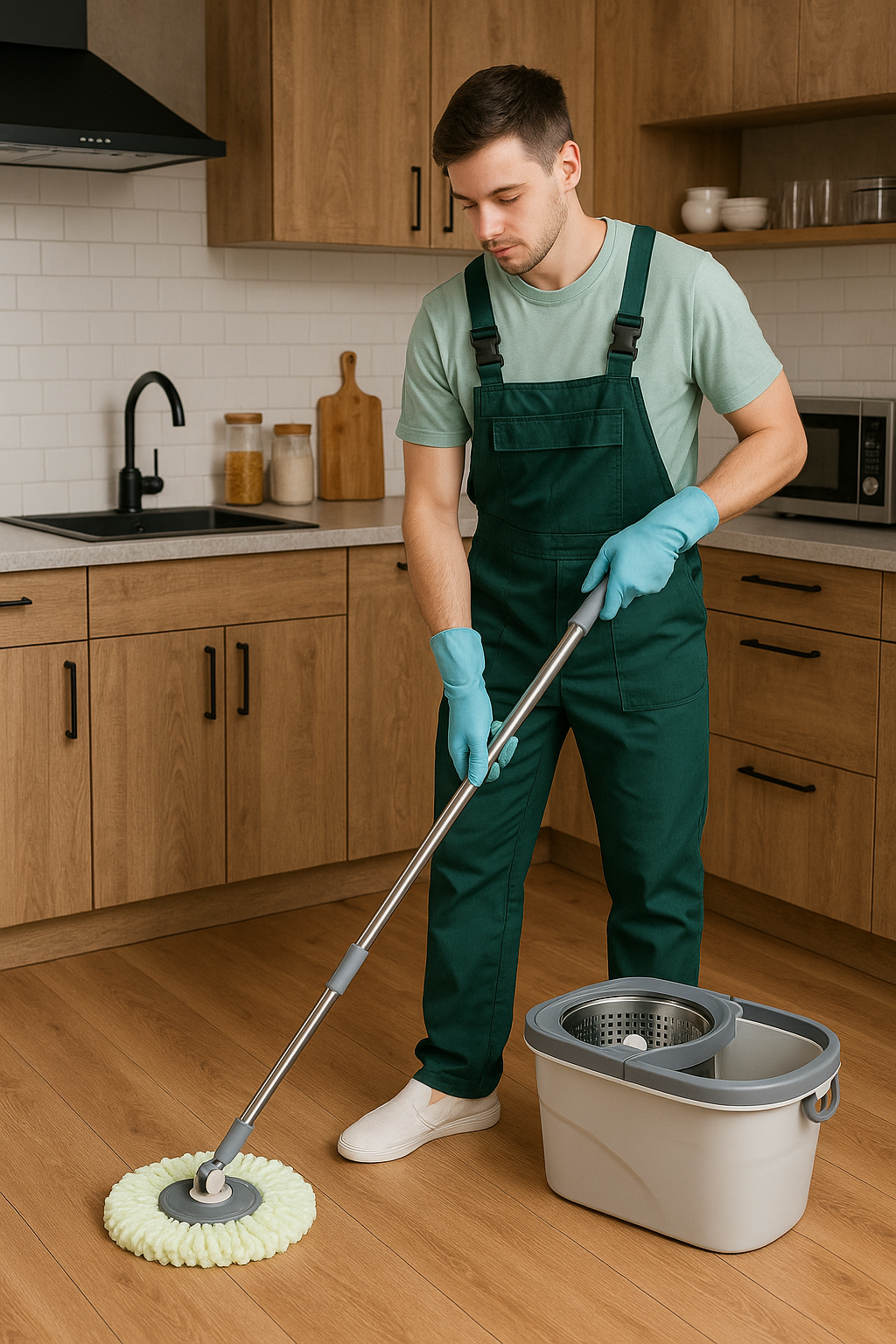 الممسحة مزودة برأس من ألياف مايكروفايبر عالية الامتصاص، قابلة للفك والغسل، مما يجعلها مناسبة لمختلف أنواع الأرضيات مثل السيراميك، الرخام، والبلاط.